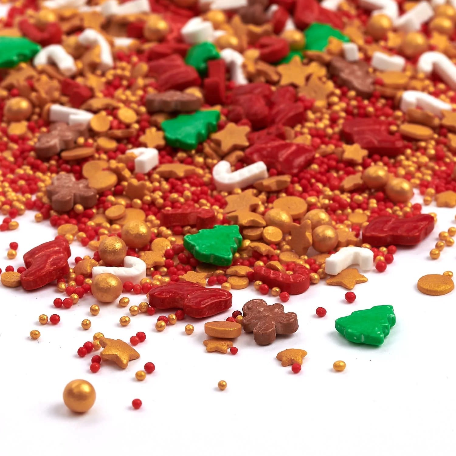 Als je deze sprinklemix gebruikt, stopt de kerstman misschien niet zomaar bij jou thuis. Voor deze heerlijke mix vliegt hij meerdere keren de wereld rond voordat hij weer terug gaat naar de Noordpool. Of het nu gaat om koekjes, cupcakes, een cake of een taart, met deze sprinkles komt de kerstsfeer meteen naar boven bij het bakken. Met speculaaspoppen, rode laarsjes en kerstbomen.