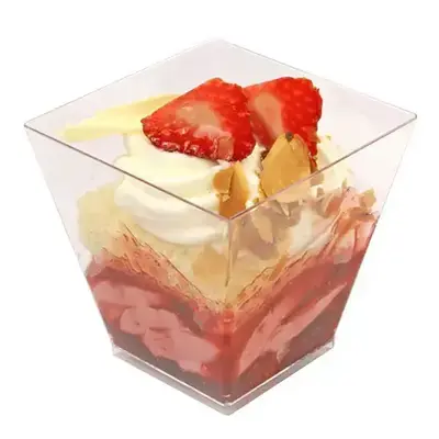 Met een inhoud van 210 milliliter is deze cup geschikt voor desserts zoals trifle, tiramisu, panna cotta met topping of een mousse in meerdere lagen. Ook hartige gerechten zoals pastagerechtjes of koude soepjes kunnen perfect gepresenteerd worden in deze bucket cups.